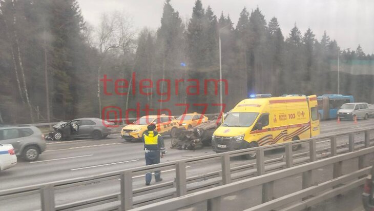 Движение затруднено на 44-м км МКАД из-за аварии с несколькими авто