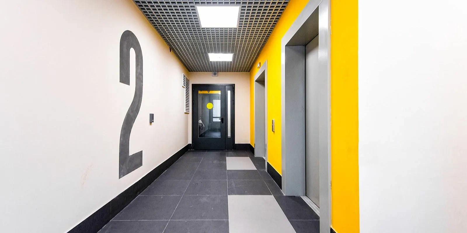 В здании расположены три входные группы с ресепшен-стойками, зонами отдыха с мягкой мебелью, комнатами для проведения мероприятий и почтовыми холлами. В корпусах выполнено угловое панорамное остекление, а фасады облицованы керамогранитом, камнем и панелями с имитацией металла.