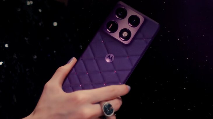 Задняя панель смартфона украшена текстурой, напоминающей шелк, и инкрустирована 20 аметистовыми кристаллами Swarovski. В каждый наушник Moto Buds 2 Plus встроено по 12 кристаллов, а зарядный кейс декорирован 41 элементом.